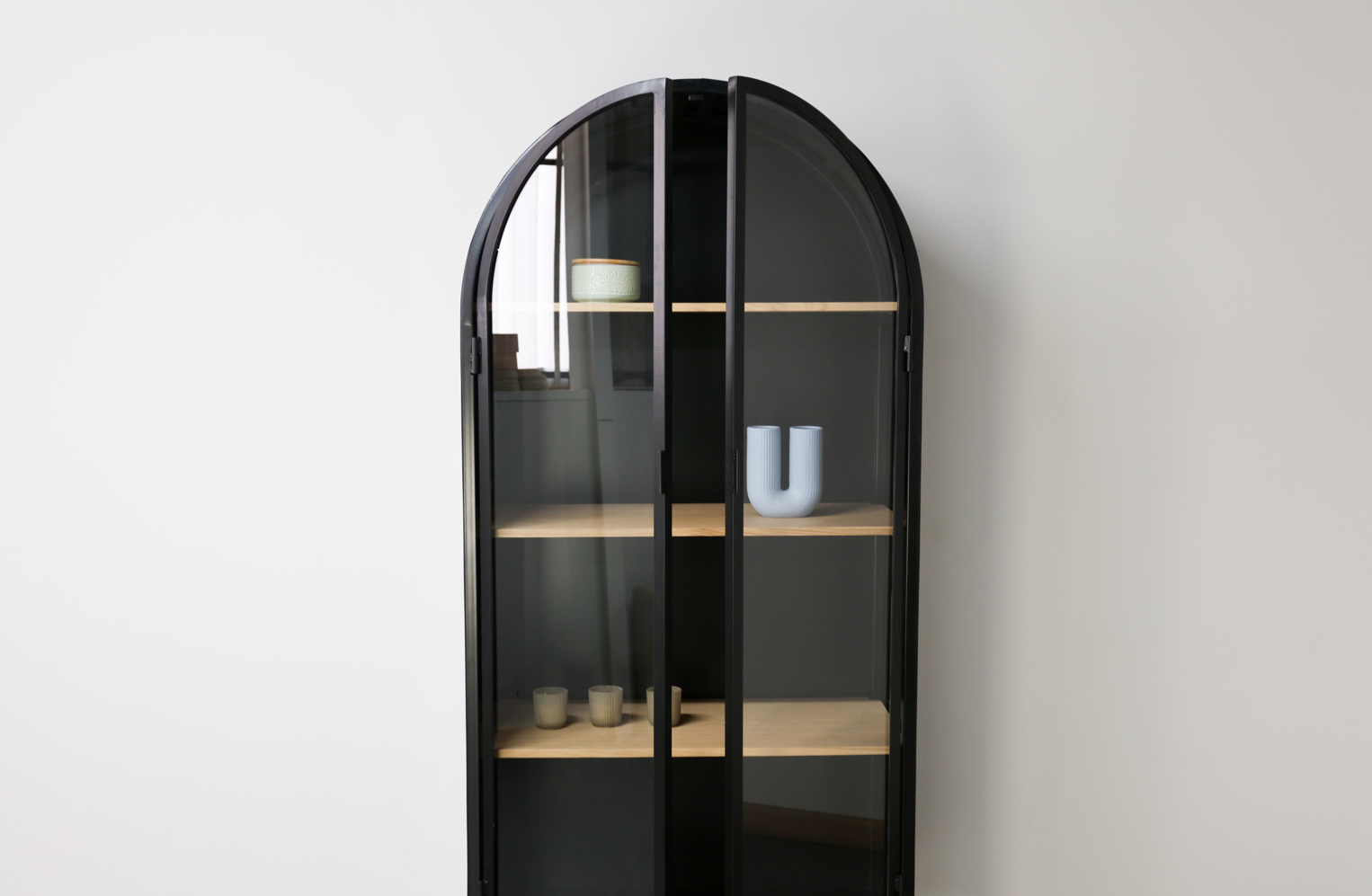 Our Arched steel cabinet is a solid steel unit powder coated to give you a solid long lasting finish. We fit the doors with safety glass giving you peace of mind. The feet are fitted with adjustable legs to even out the unit on any uneven floor surface.